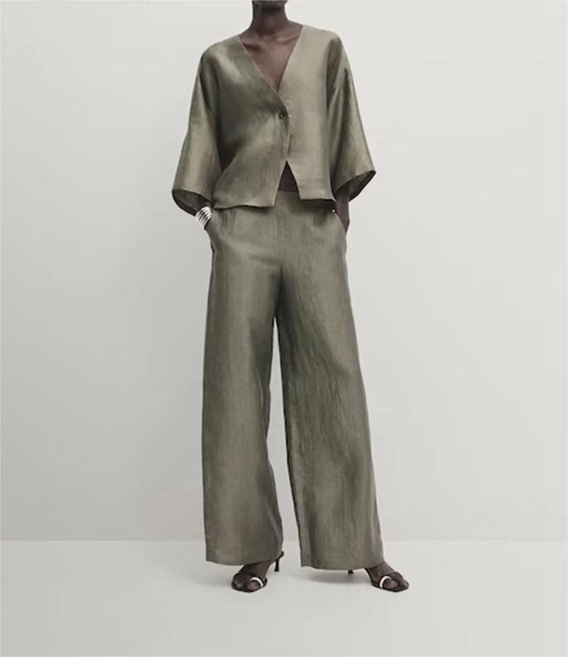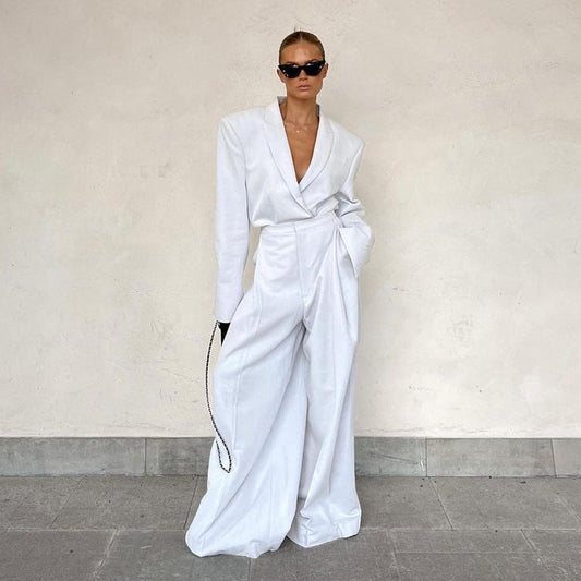 Serene Grace 3-Piece Power Blazer Wide Leg Pants Set