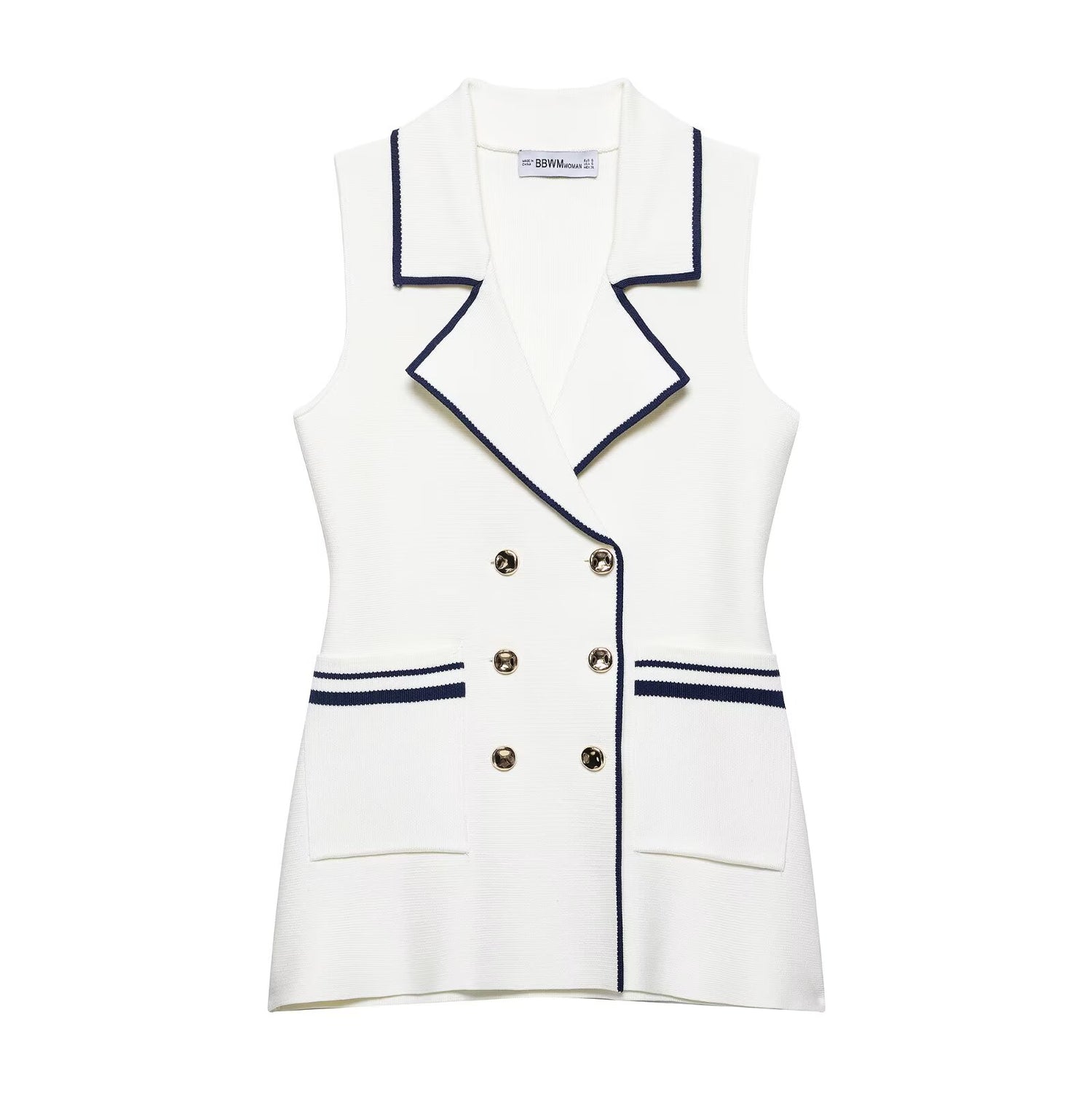 TGC “Éternelle” Blazer Dress | Elegant Collared Mini with Panelled Sleeves & Patchwork Detail