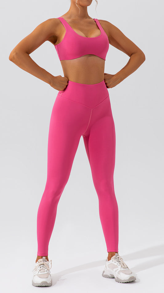 TGC FASHION Hot Pink Gym Outfit 2-piece Set