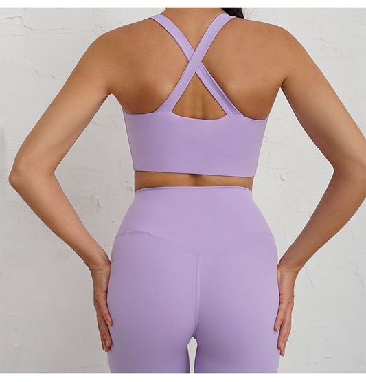 Fashion Trends 2023 | Lilac Sports Bra Top High Waist Leggins Gym Outfit 2-piece Set