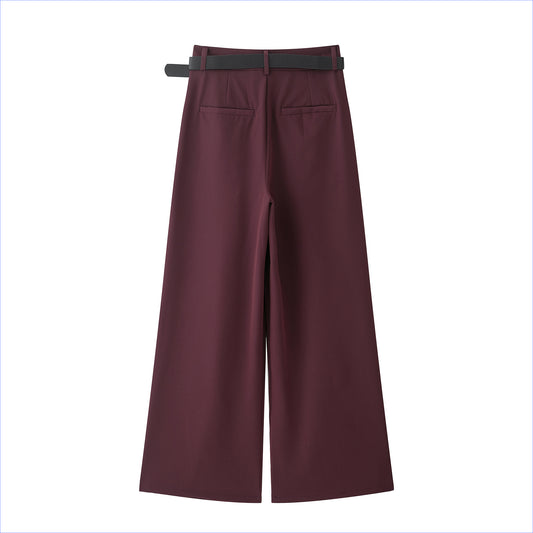 Burgundy Spring 2025 | Belted Pleated Wide Leg Trousers