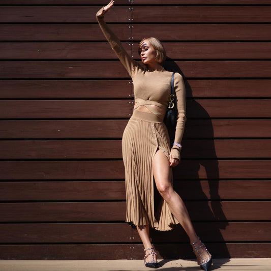 Fall Outfits | Cut Out Crop Top High Waist Skirt Outfits 2-piece Set