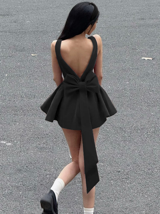 pring Summer 2025 | Backless Bow Slip Dress – Cinched Waist 3D Decor Mini Cami Dress for Women