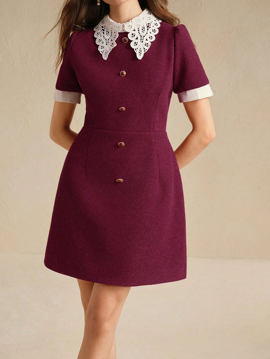 Burgundy Spring 2025 | French Square Collar Retro Slim Fit Sling Dress