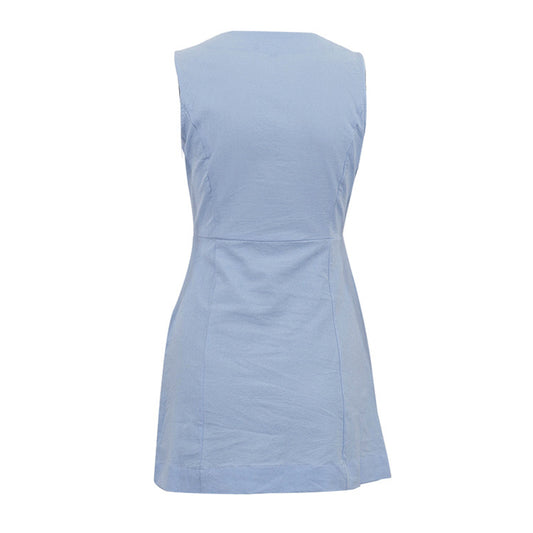 Summer 2025 | Solid Color Casual Slim A-Line Mini Dress – Button Detail & Asymmetric Hem