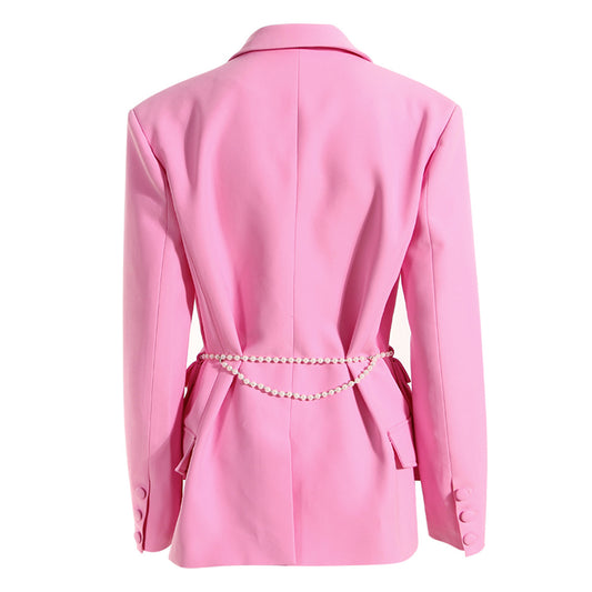 Fall 2023 Fashion Trends | Pink Pearl Pockets Chain Long Blazer,