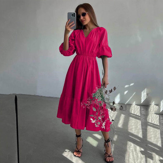 Elegant Summer Dresses | V neck High Waist French Cotton Dress