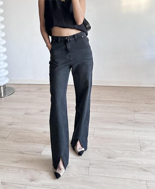Summer Outfits | Long Leg Effect Visual Front Slit High Waist Jeans