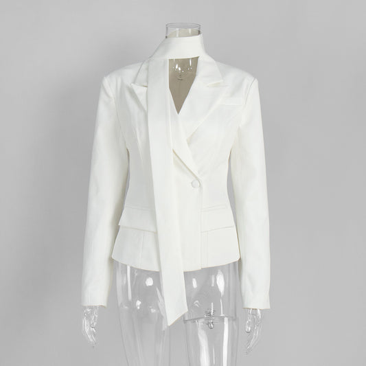 [Grace Bow Blazer] | Elegant Ribbon-Waist Short Office Coat – Double Breasted Women’s Blazer by TGC