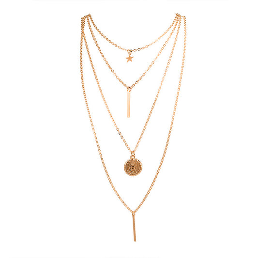 ZZ Minimalist Round Disco Coin Chain Necklace Pendant