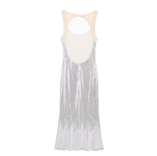 Glitter See-Through Camisole Dress - Backless Slim Fit Cutout Midi Party Dress