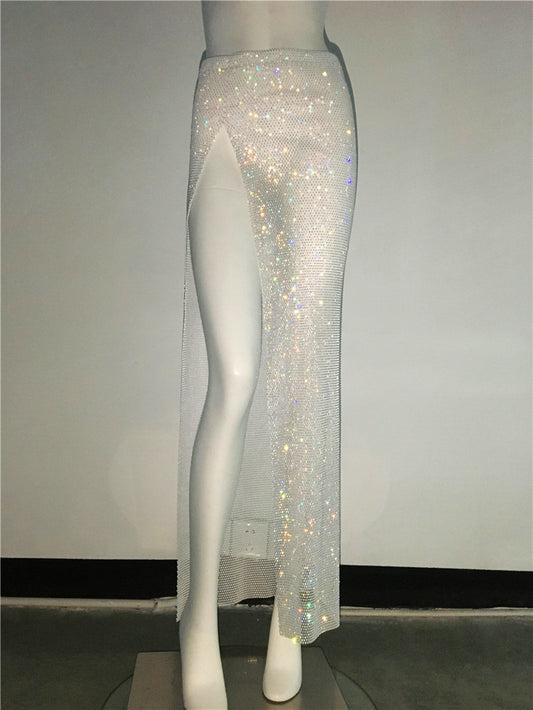 Rhinestone Outfits | See Through Mesh Diamond Rhinestone Skirt