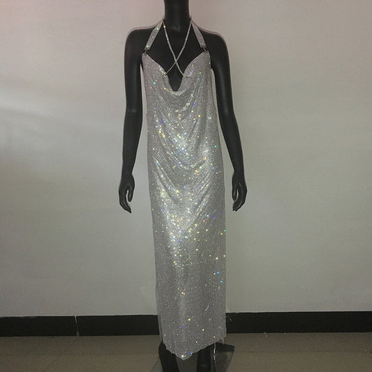 Rhinestone Dresses | Metallic Diamond Rhinestone Glitter Maxi Long NYE Dress