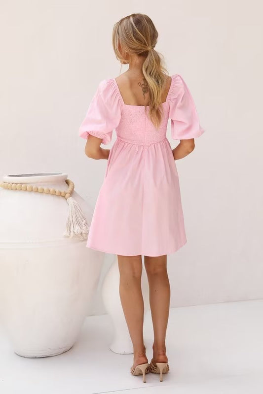 Spring Outfits 2024 | Millennial Pink Cotton Cut Out Short Dress