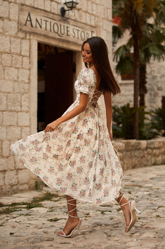 Spring Outfits | White Aesthetic Tiered Lace Ruffles Maxi Dress