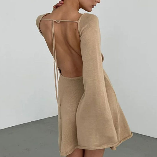Old Money Aesthetic Outfits | Long Sleeve Knitted Cotton Sweater Dress