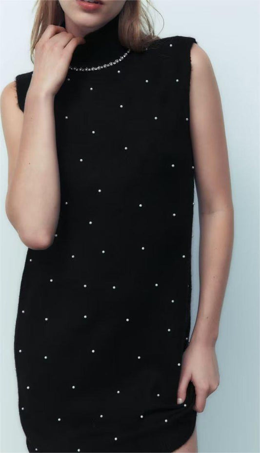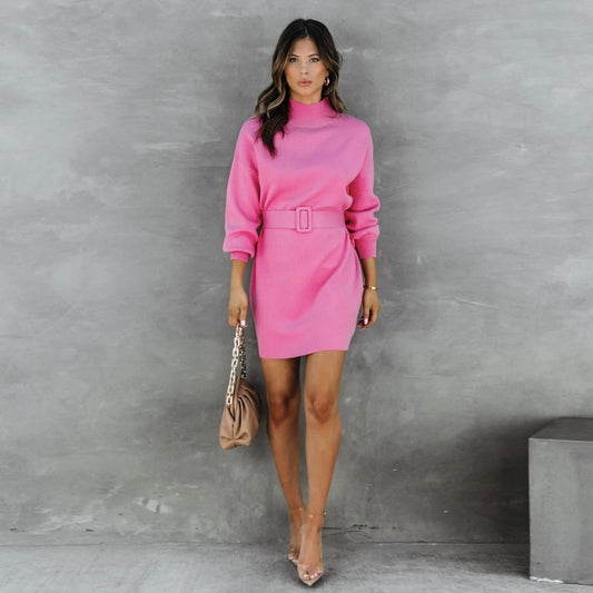 Old Money Aesthetic Outfits | Knitted Viscose Turtleneck Sweater Dress