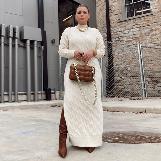 Cute Winter Outfits | Long Sleeve Knitted Cotton Sweater Dress