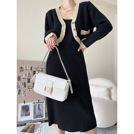 Old Money Aesthetic Outfits | Elegant French Knitted Viscose Long Sleeve Sweater Dress