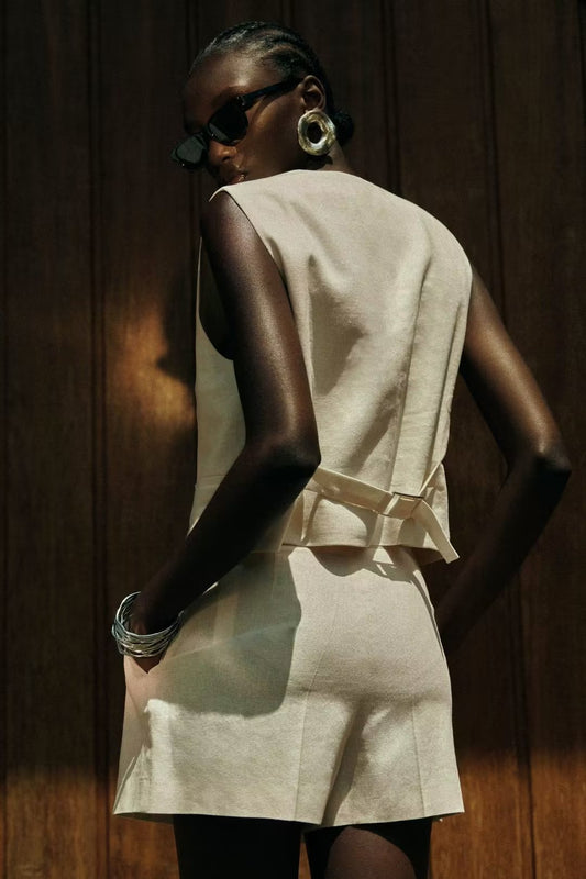 The Arden Set – Linen-Blend Vest & Shorts Suit for Autumn Street Style