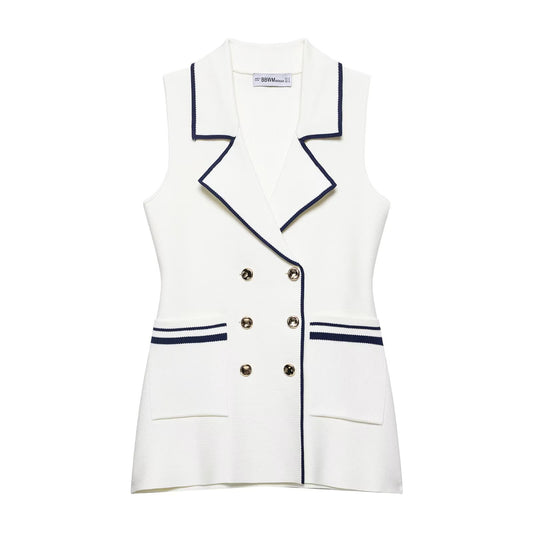 The Camille Vest – Double-Breasted Trim Knitted Vest for Spring & Summer