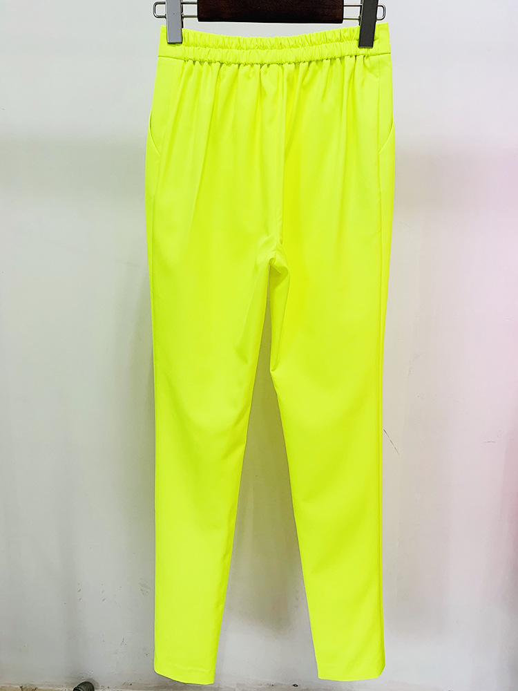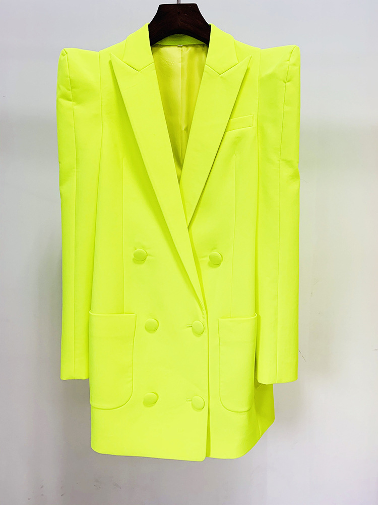2022 Fall Fashion Trends | Neon Yellow Aesthetic Structured Oversized Cotton Blazer Outfit 2-piece Set