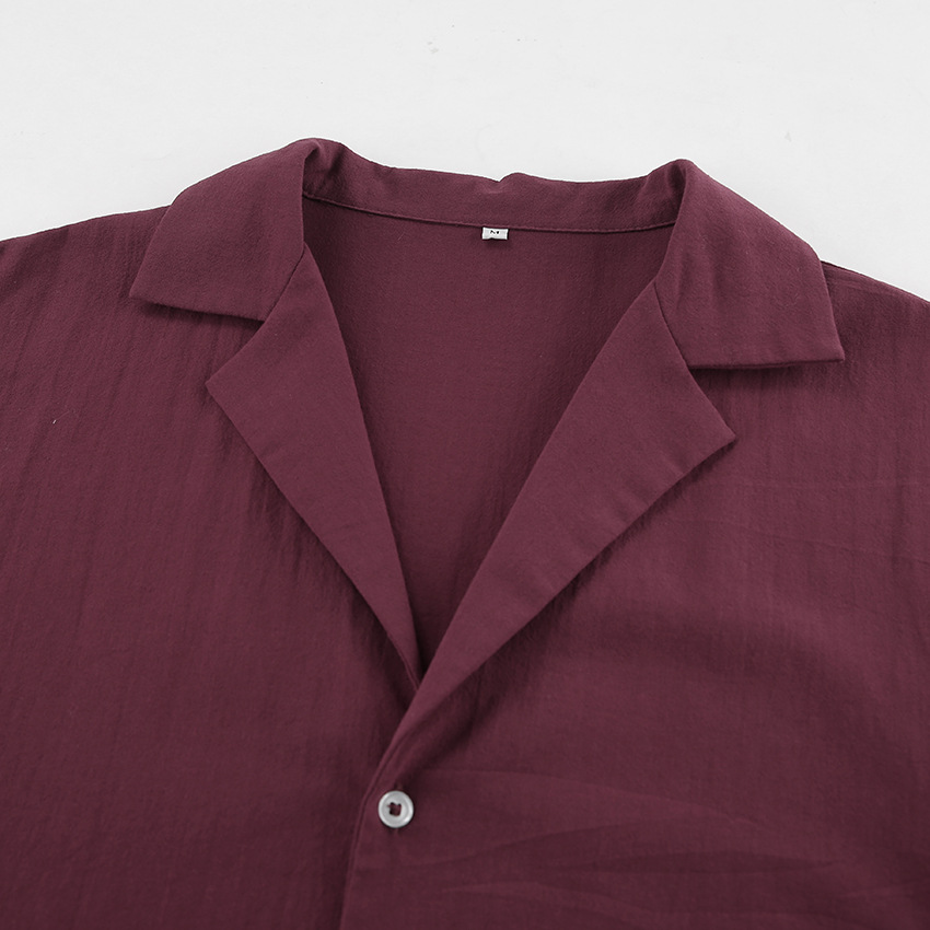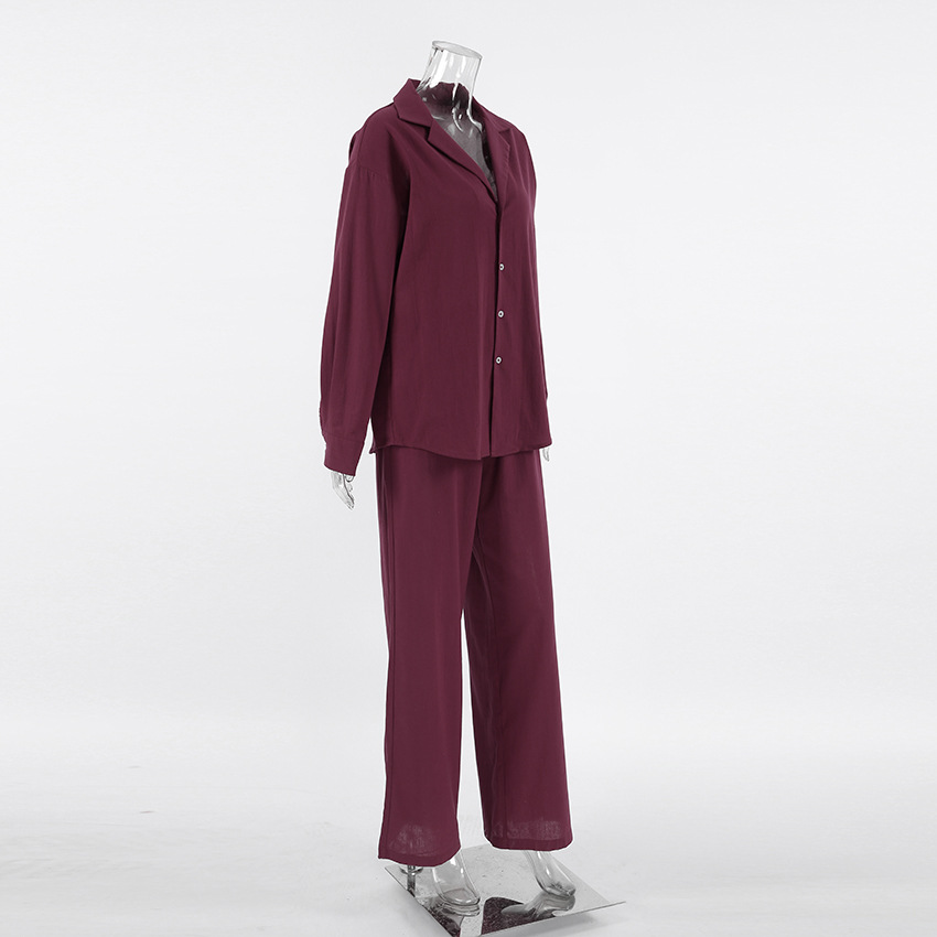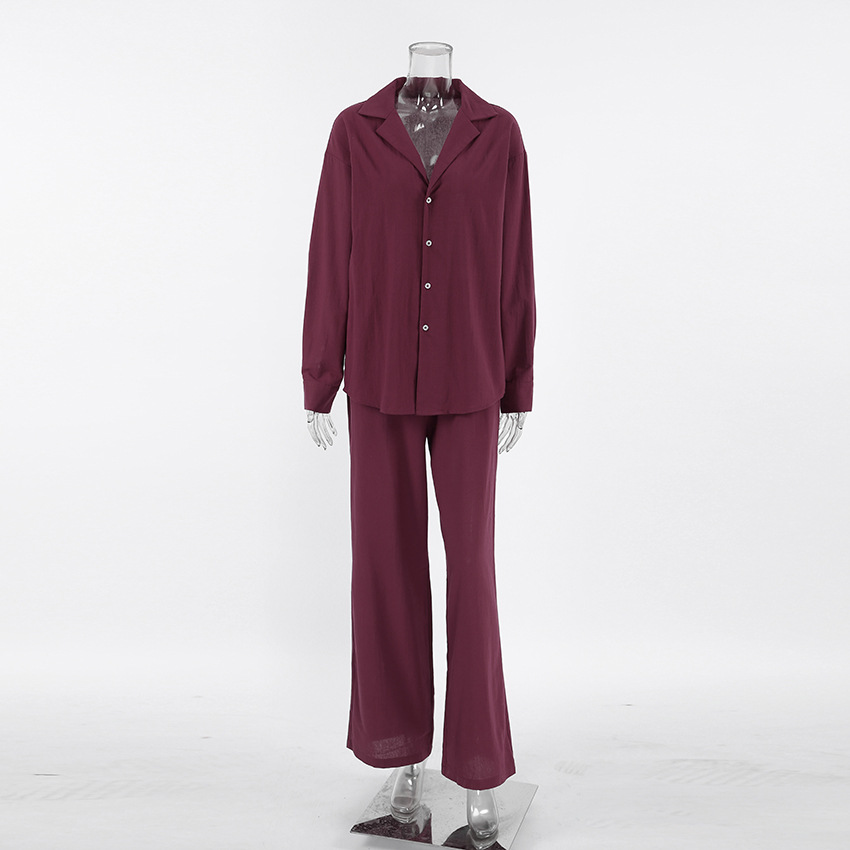Elevate your wardrobe with our luxurious burgundy cotton linen long-sleeved shirt trousers 2 piece set. Made with high-quality materials, this sophisticated ensemble effortlessly exudes elegance and taste. Perfect for any occasion, this set will make you stand out with its premium craftsmanship and exclusive design.