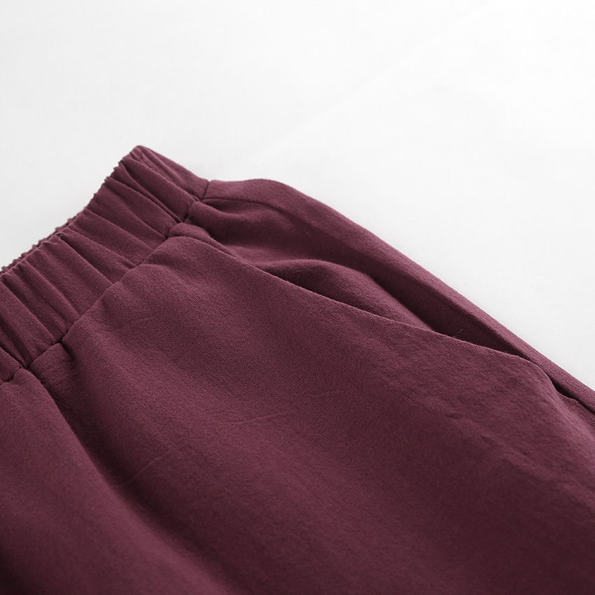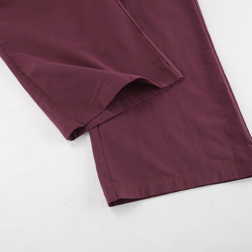 Burgundy Cotton Linen Long-Sleeved Shirt Trousers 2 Piece Set