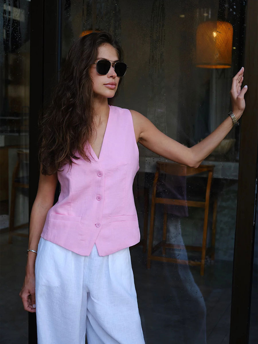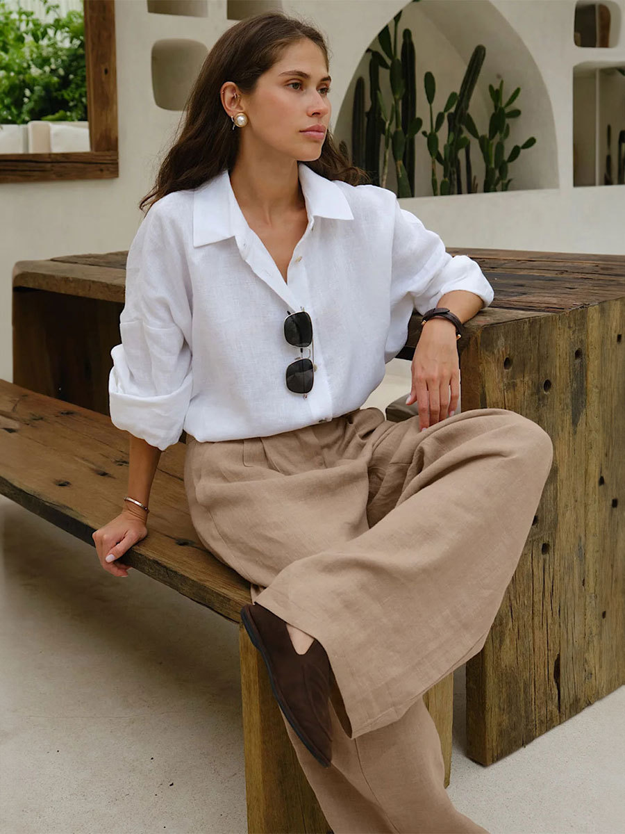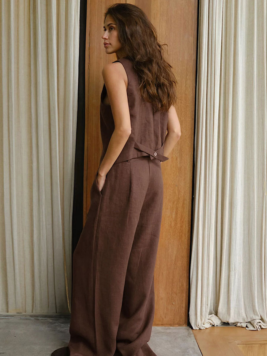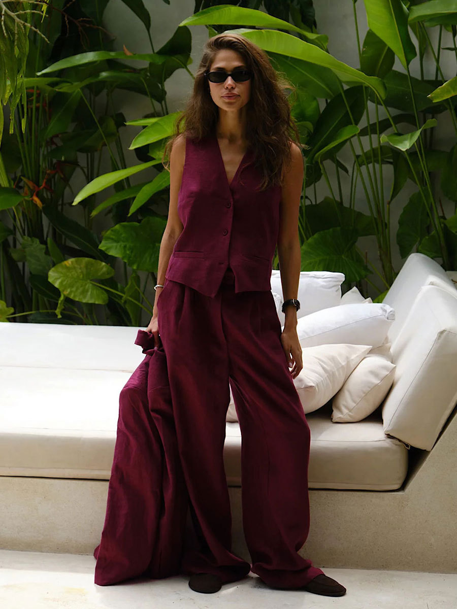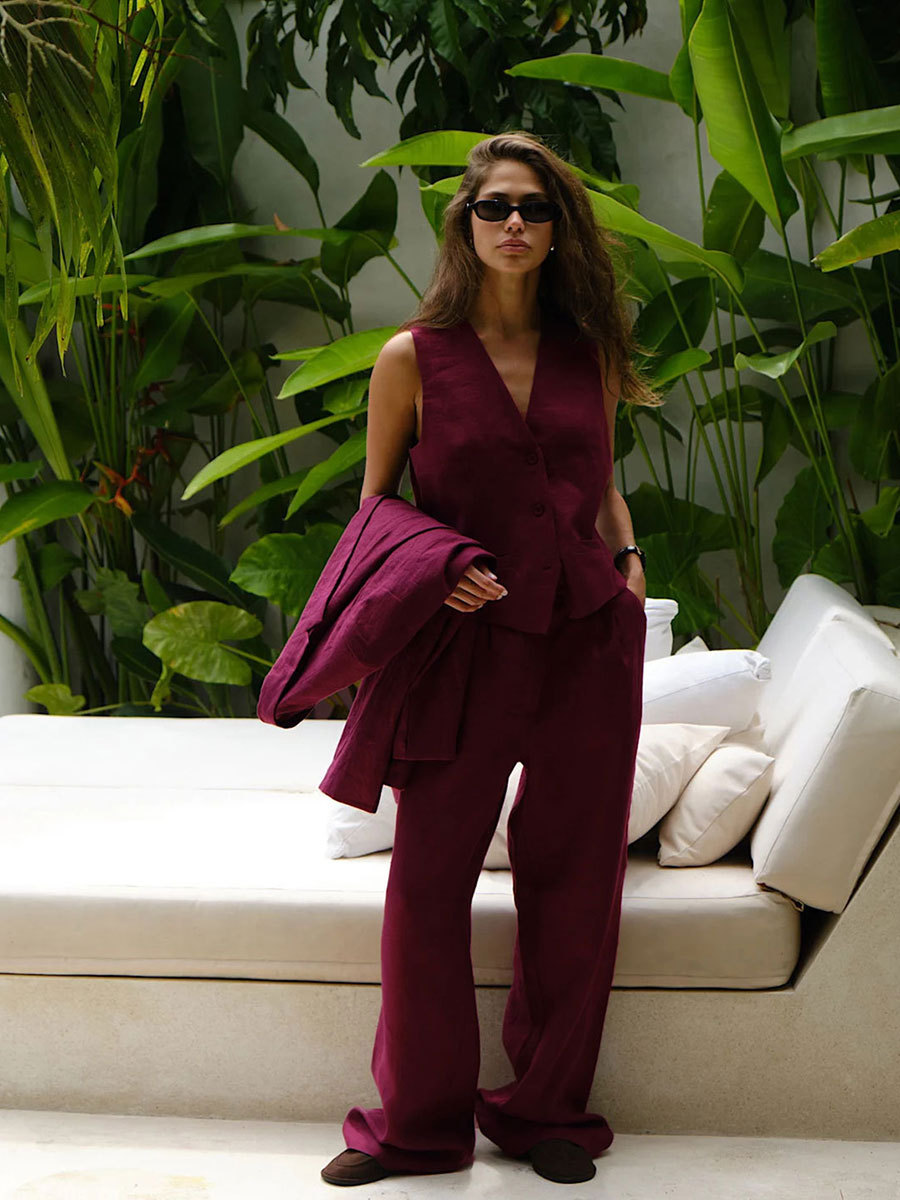 Pair these trousers with a crisp white blouse and loafers for a classic office look or with a lightweight tank and sandals for an effortless weekend outfit. Designed for the modern woman, these Burgundy Cotton Linen Trousers are where comfort meets elegance, making them a must-have staple for your seasonal wardrobe.