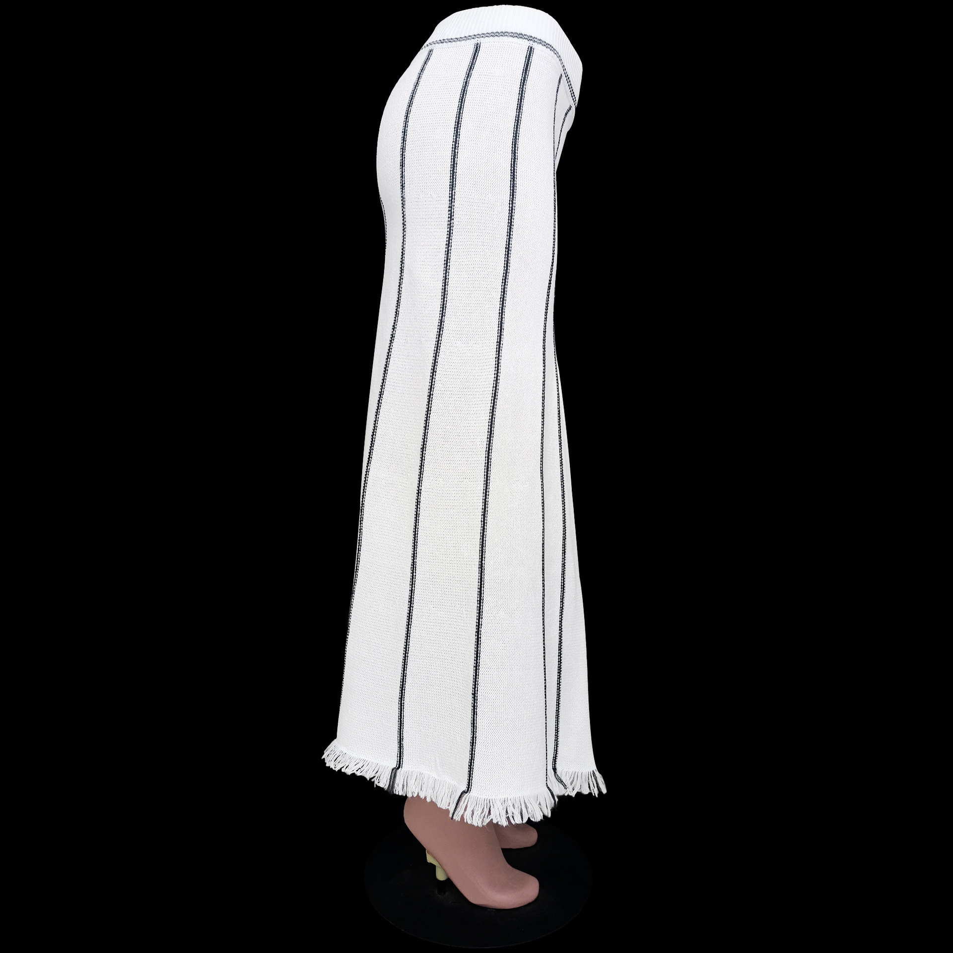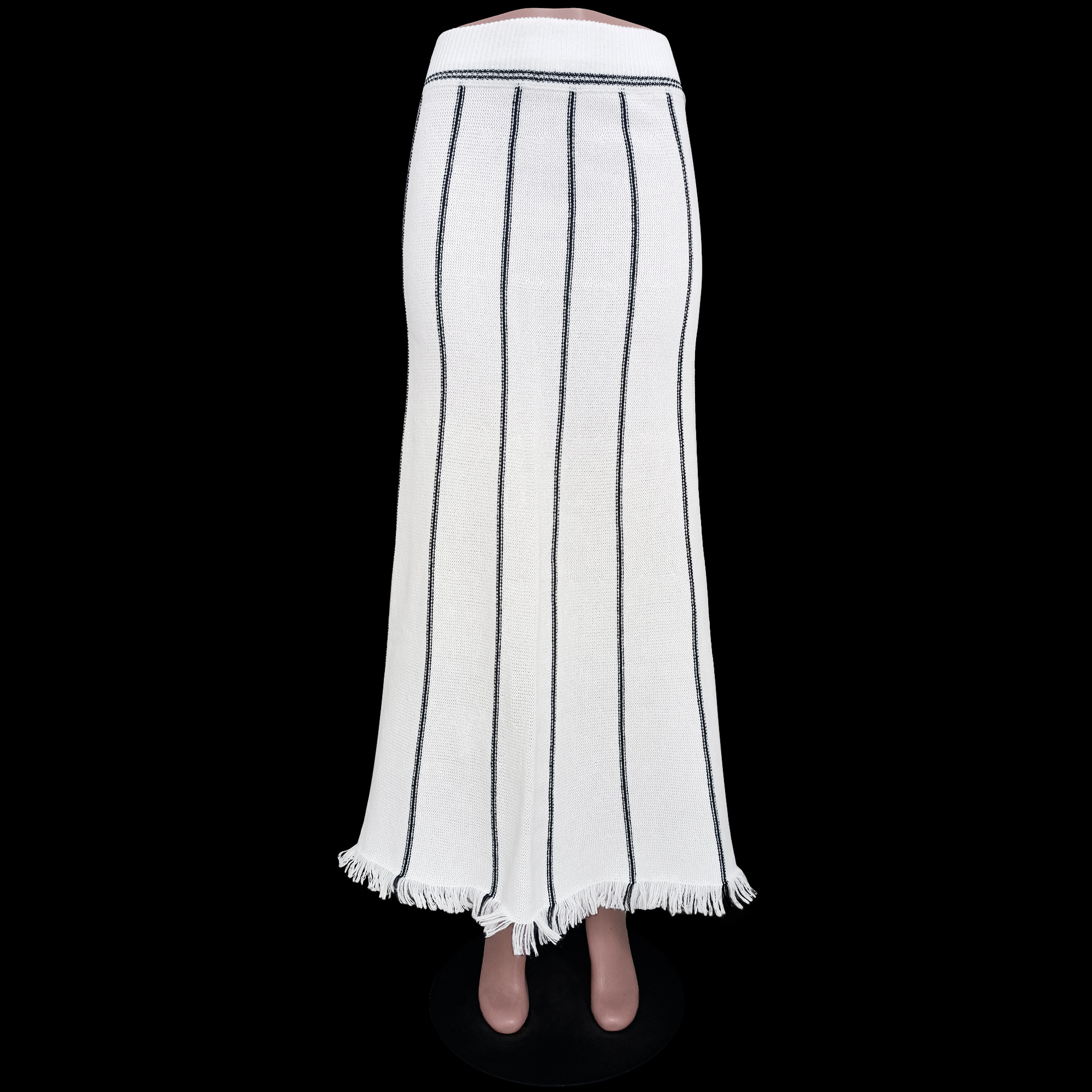**Elevate Your Elegance with the Vertical Stripes Tassel Knitted Skirt**
