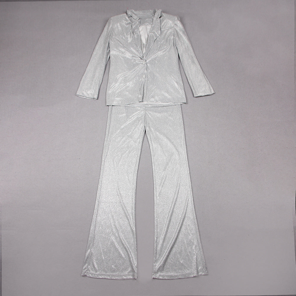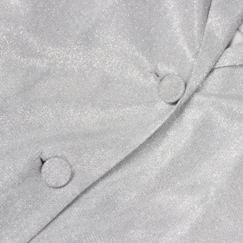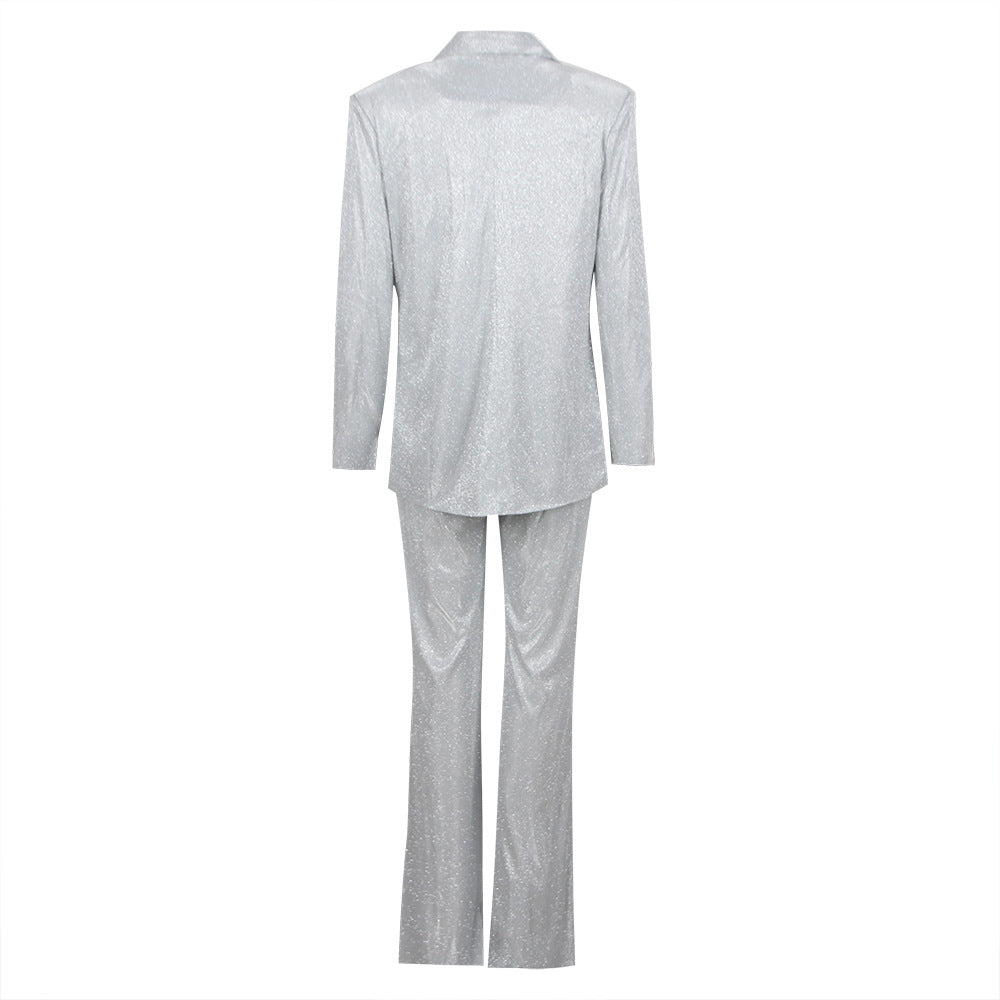 Whether you're attending a summer office event or a special occasion, this outfit is your go-to choice for a summer suit that combines professionalism with a touch of sparkle. The glittering powder fabric adds a touch of glamour and elevates your style to the next level.