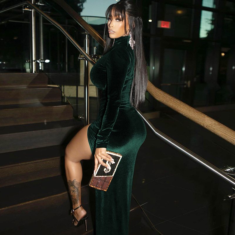 Fall 2022 Fashion Trends | Velvet Turtleneck Split Dress