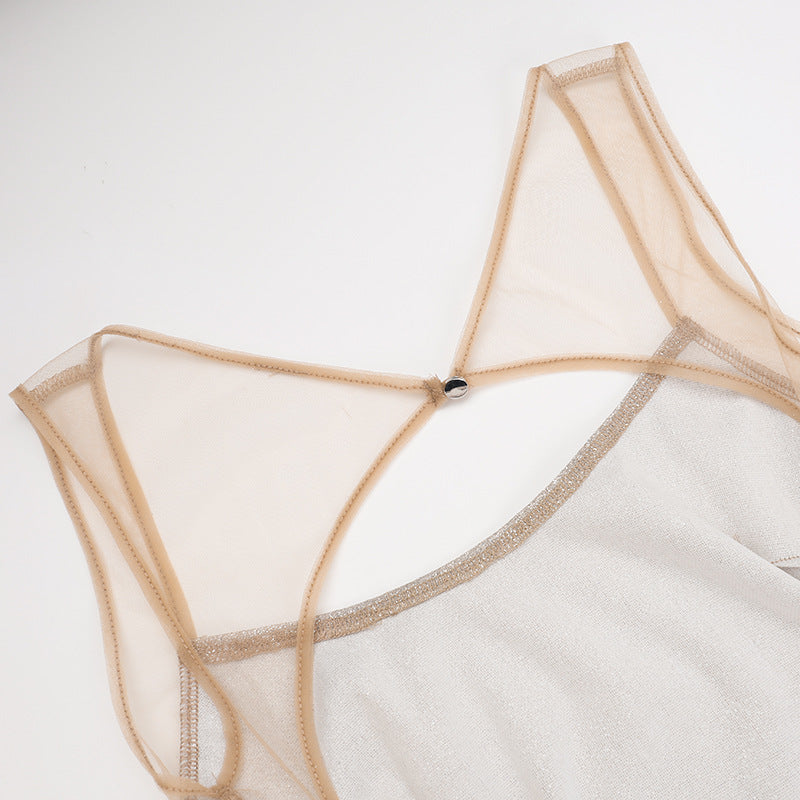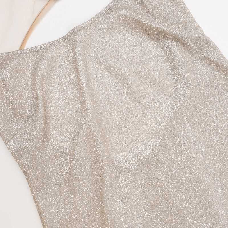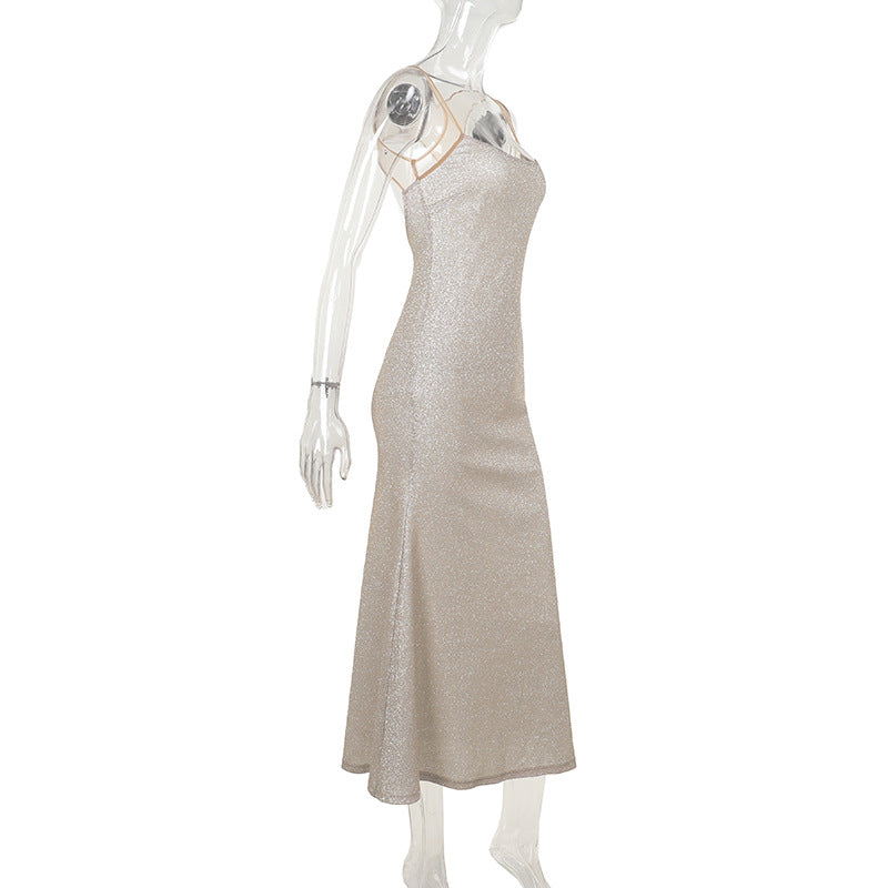Glitter See-Through Camisole Dress - Backless Slim Fit Cutout Midi Party Dress