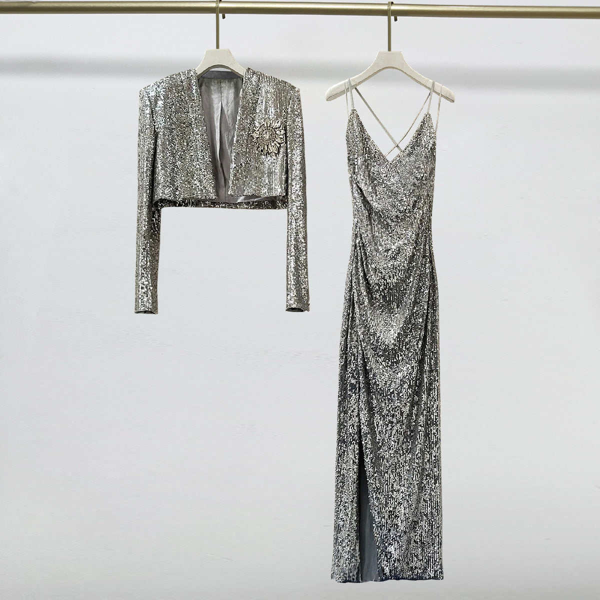 Elegance meets glamour with our Elegant Silver Dress, perfect for making a statement as a wedding guest or any special occasion. Here's why you'll adore this dazzling ensemble: