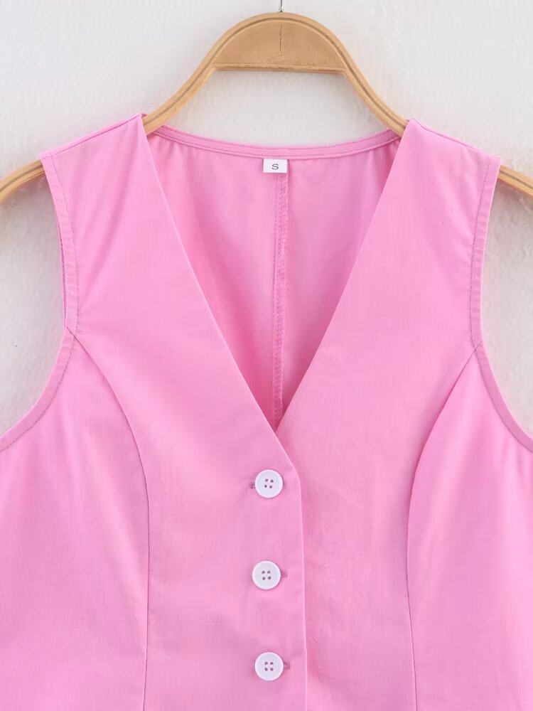 The TGC “Summer Simplicity” Set is your warm-weather answer to clean, polished style. Featuring a slim-fit sleeveless V-neck vest and a high-waist midi skirt, this two-piece embodies effortless elegance while staying office-ready and summer-light.