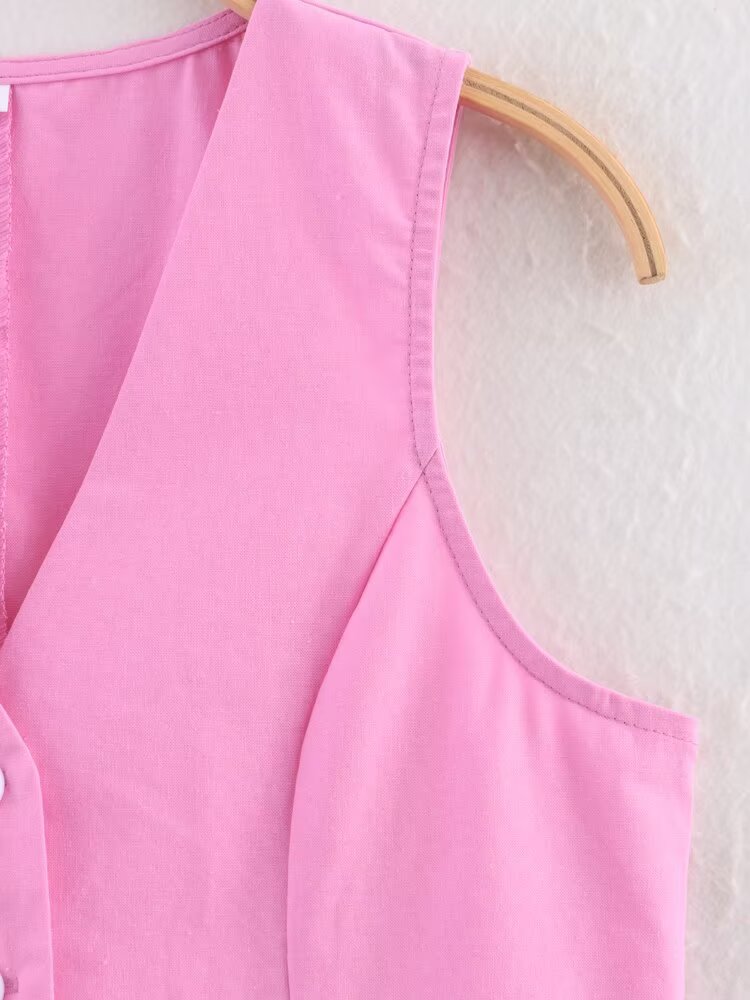 Summer Simplicity” V-Neck Vest & High Waist Midi Skirt Set | Sleeveless Office Chic 2-Piece