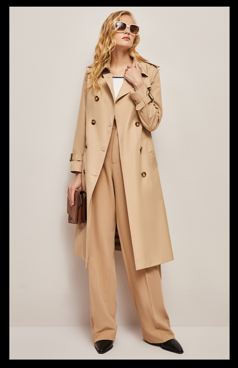 Perfect for both spring and fall, this trench coat complements a wide range of outfits. Pair it with jeans, dresses, or skirts - the options are endless.