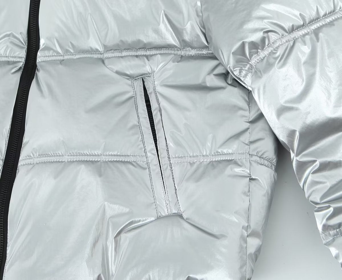 🧥 **Shine in Silver:** Our puffer jacket is designed to make you stand out. Its metallic silver finish adds a touch of glamour to your outfit.