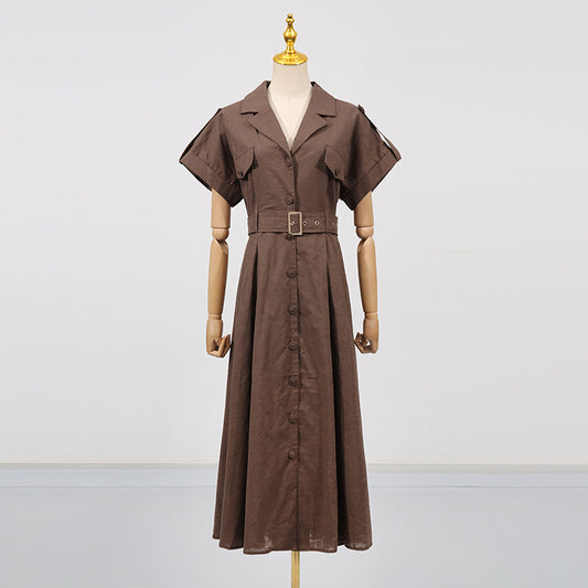 Summer 2025 | Solid Color Casual Slim A-Line Mini Dress – Button Detail & Asymmetric Hem