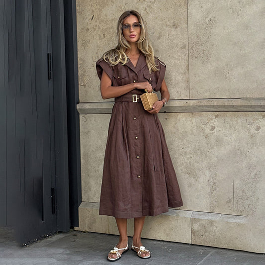 The Wren Dress – Sleeveless Cotton Cardigan Dress with Waist-Cinched Ease