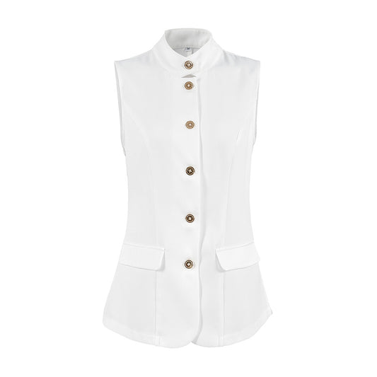 Elegant White Stand Collar Sleeveless Vest Shirt – Office Casual Spring Summer Top