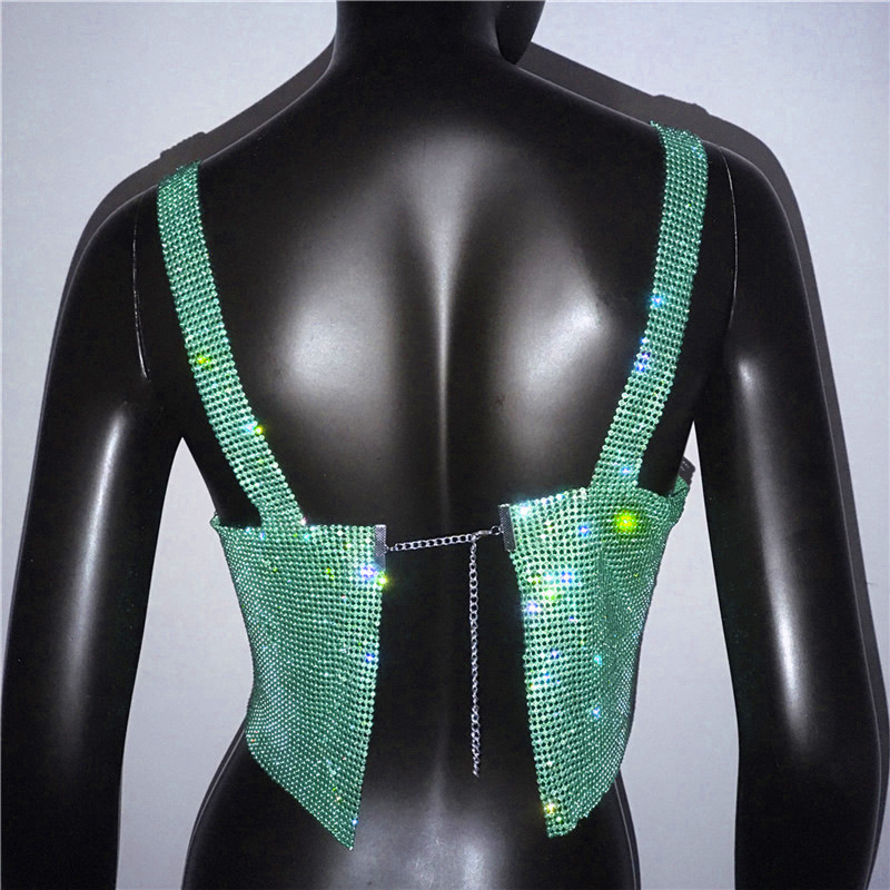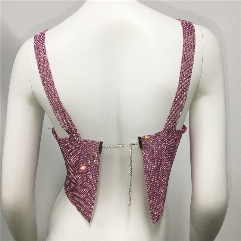 Crafted to elevate your style game, this top boasts a metallic sheen that exudes an air of sophistication and modernity. The incorporation of shimmering rhinestones adds a touch of elegance and allure, creating a striking visual contrast that's both sweet and spicy.