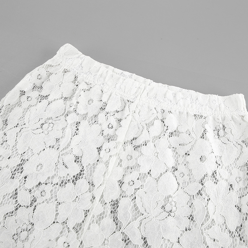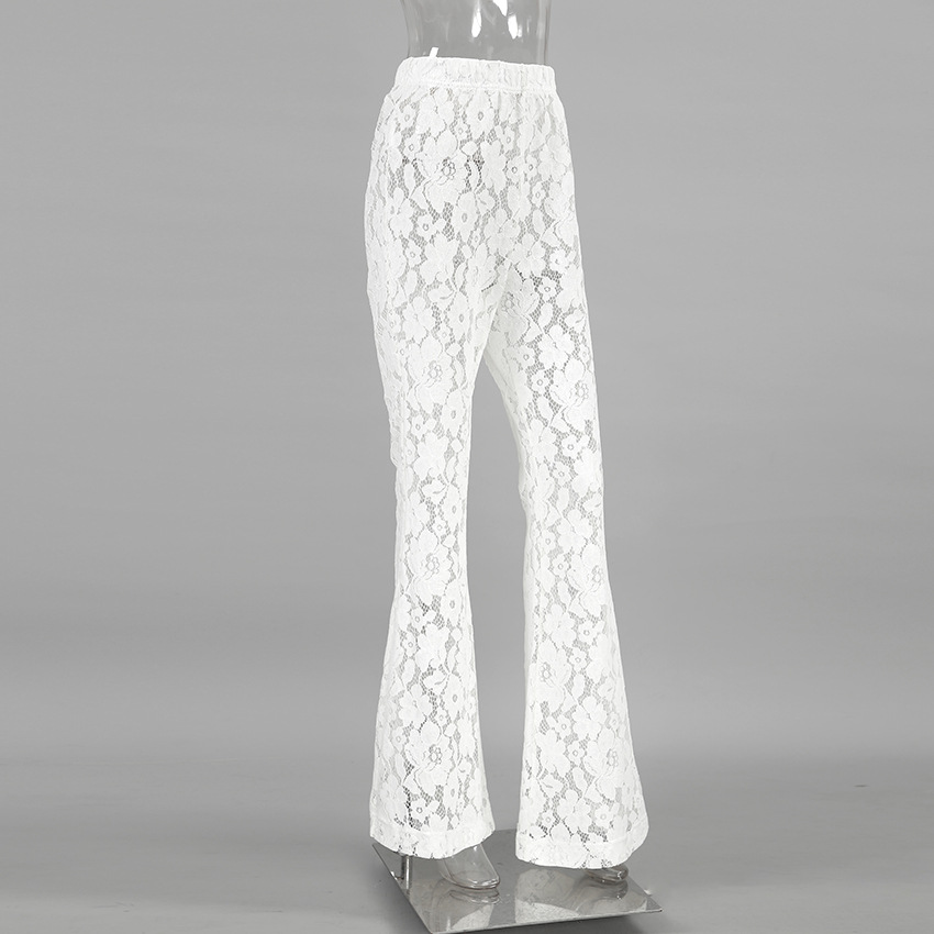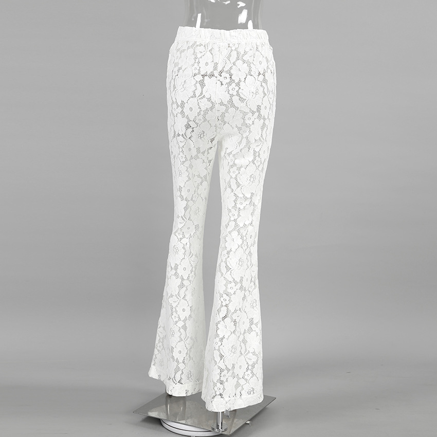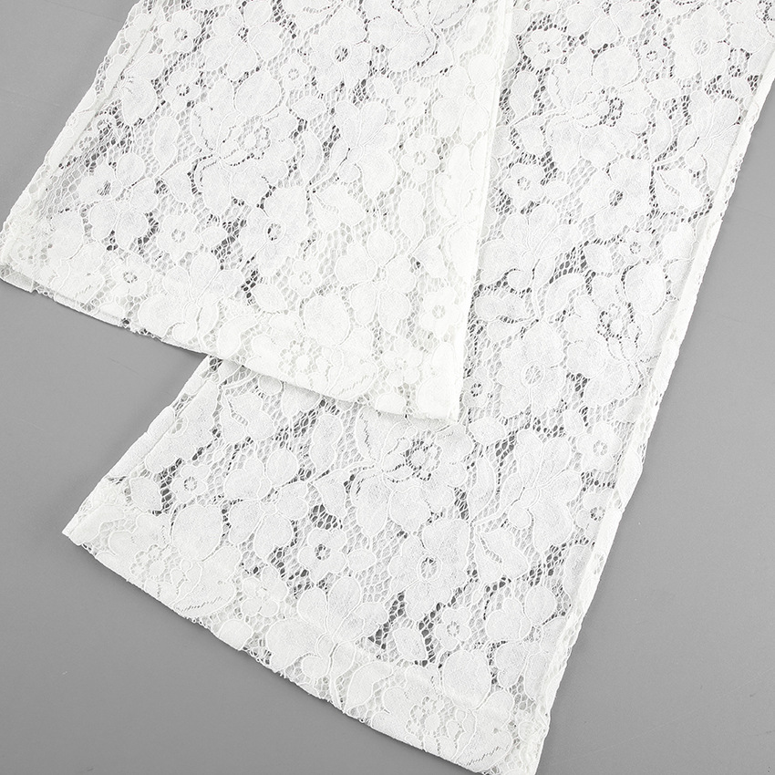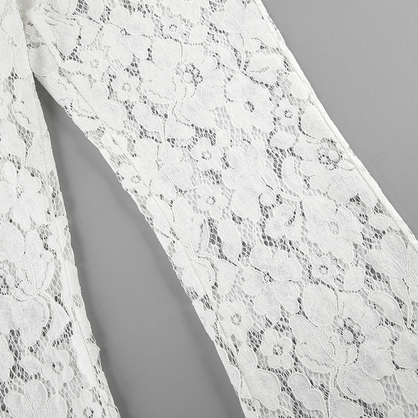 2024 Summer Outfits | Cotton Lace White Jacquard See through High Waist Flared Pants