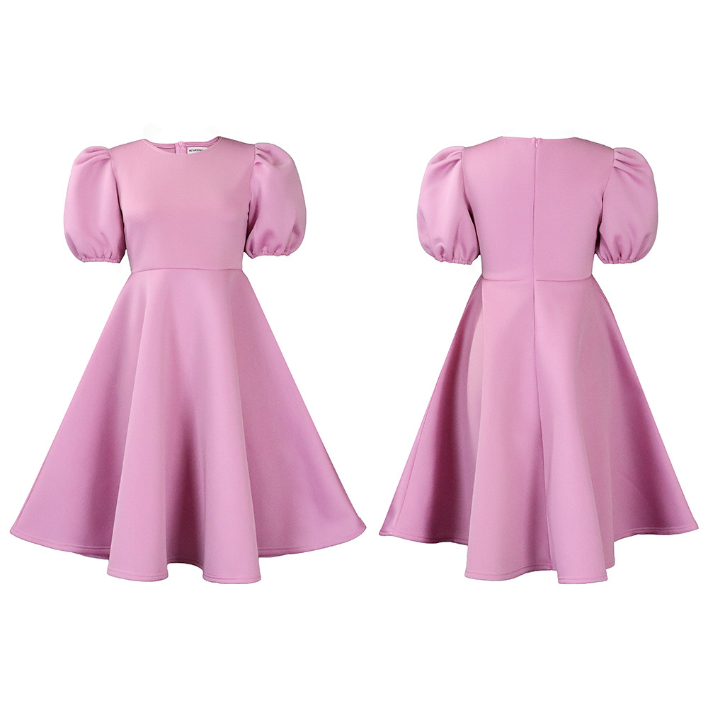 The neon color and puff sleeves give the dress a playful and youthful vibe, while the princess silhouette adds a touch of elegance and sophistication. You'll feel like royalty in this dress, and the lightweight and comfortable materials will keep you feeling cool and breezy on even the hottest days.
