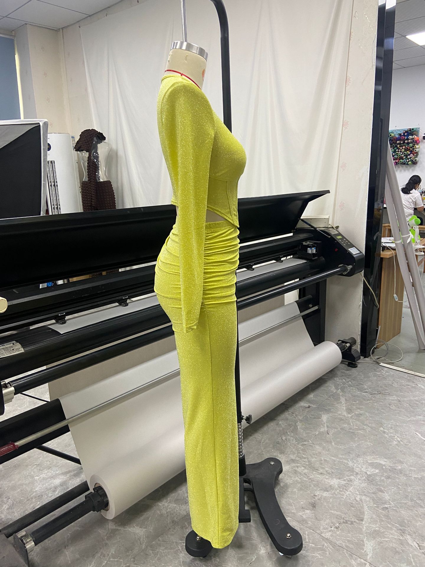 Stay ahead of the fashion curve with our Neon Yellow Long Sleeve Crop Top Skirt Outfit 2-piece Set. Made with high-quality materials, this set exudes elegance and luxury. The bold neon yellow color and figure-flattering silhouette will make you stand out from the crowd. Elevate your style and make a statement with this exclusive set.