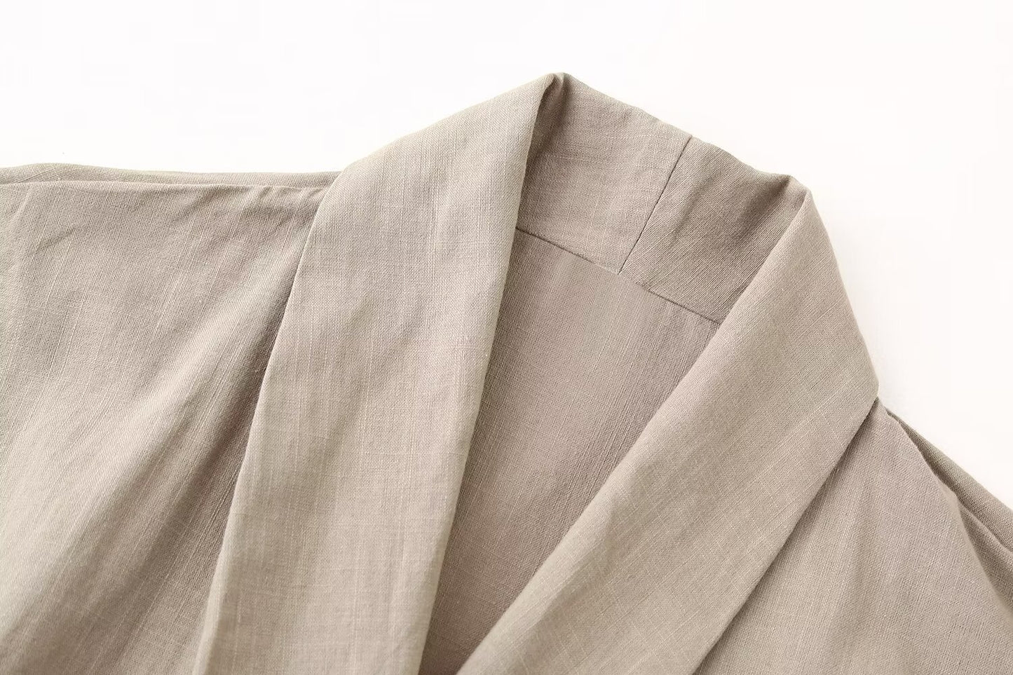 Featuring a kimono-style top with a textured double-breasted design, this outfit exudes sophistication and elegance. The V-neckline and long sleeves add a touch of allure, while the belted waist accentuates your curves for a flattering fit.