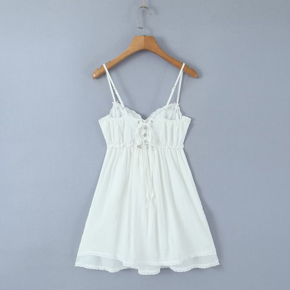 Introducing the perfect addition to your spring wardrobe: our Summer White Aesthetic Lace A-Line Mini Dress! This stunning dress features intricate lace detailing and a flattering A-line silhouette, making it the perfect choice for any springtime occasion.