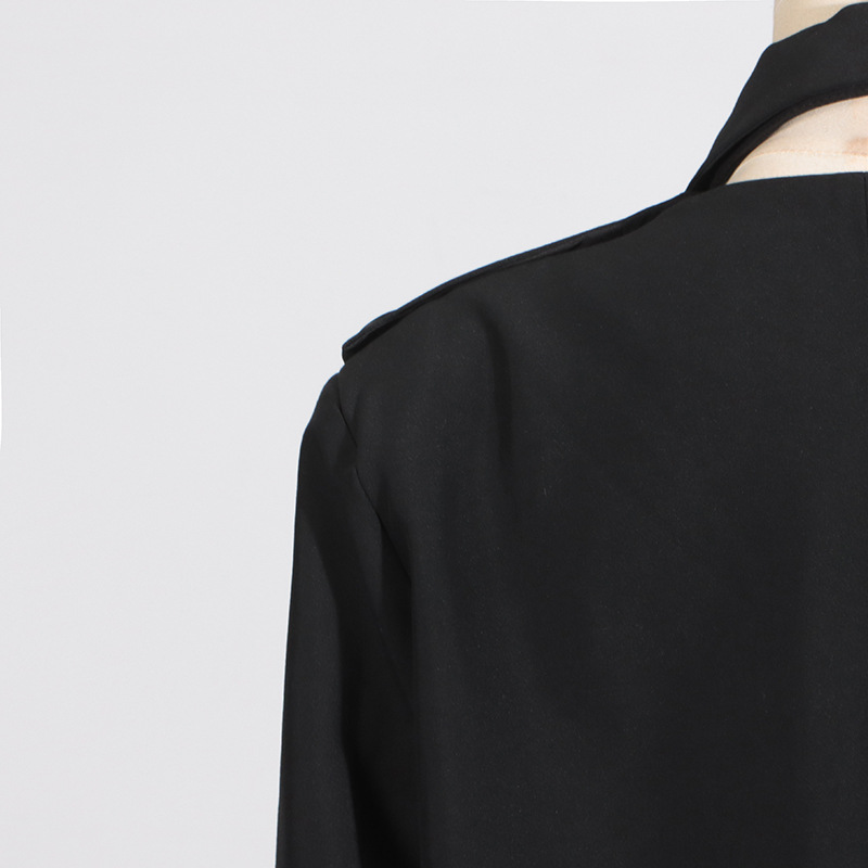 TGC FASHION Fall Outfits 2024 | Shoulder Button Cut Out Collar Black Blazer