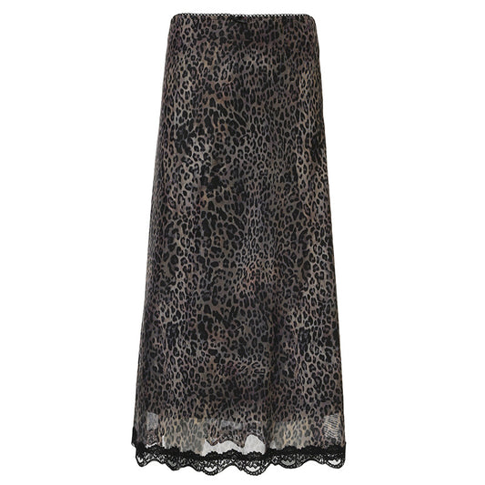 Vintage Leopard Print Lace Midi Skirt - High-Waist Slimming Design | Fall & Winter 2025 Style