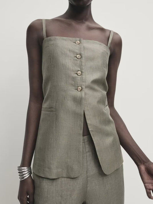 [TGC “Effortless Grace” Summer Vest & Pleated Trousers Set | Office Chic Minimalist Style]